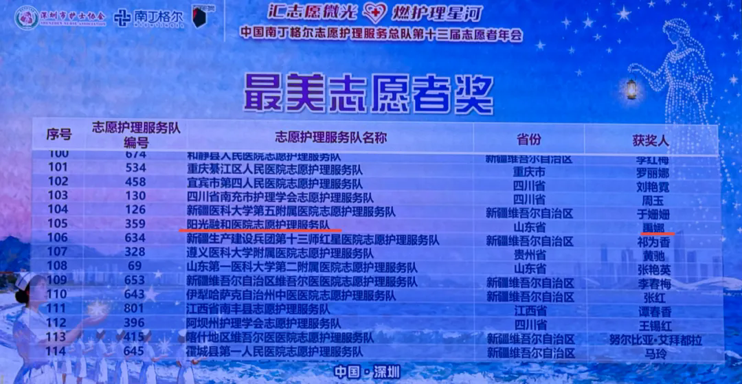 为了表彰全国护理志愿者的辛勤付出和无私奉献,总结和交流志愿护理服务经验,分享志愿护理服务故事,弘扬和践行“人道、博爱、奉献”的红十字精神、“护佑生命、竭诚奉献、专业精湛、勇气非凡”的南丁格尔精神。12月5日-7日,以“汇志愿微光,燃护理星河”为主题的中国南丁格尔志愿护理服务总队第十三届志愿者年会在深圳隆重召开。